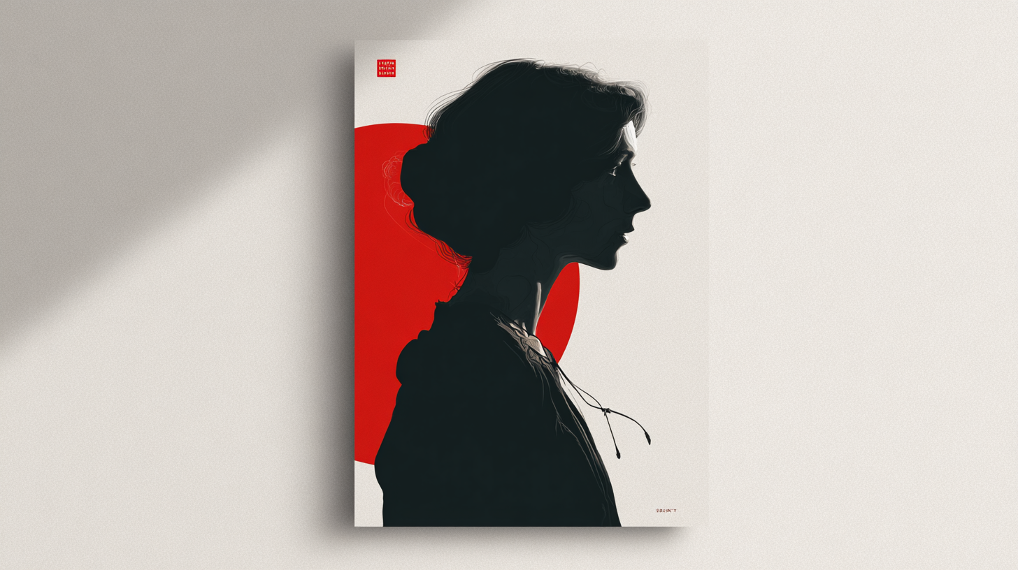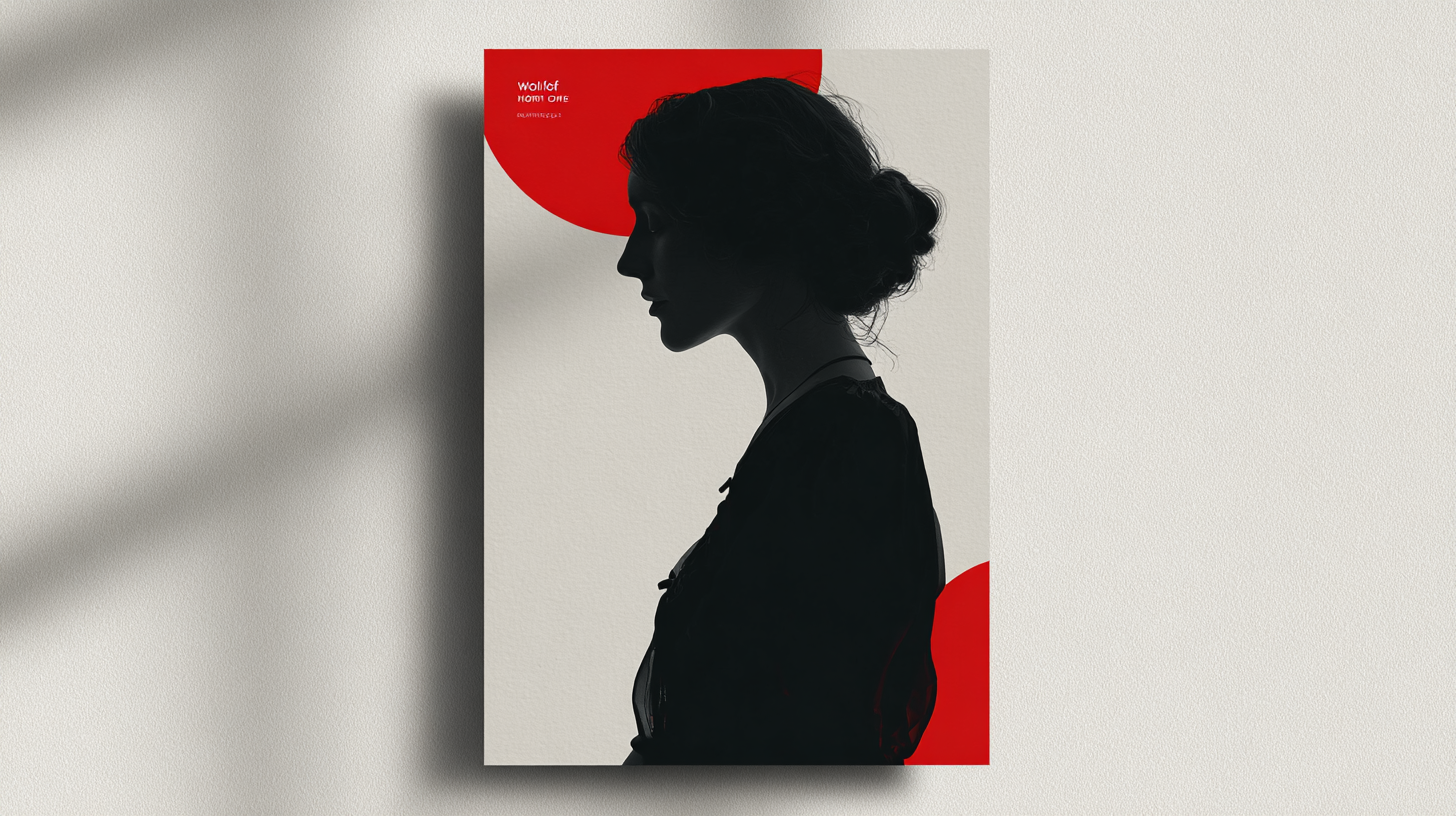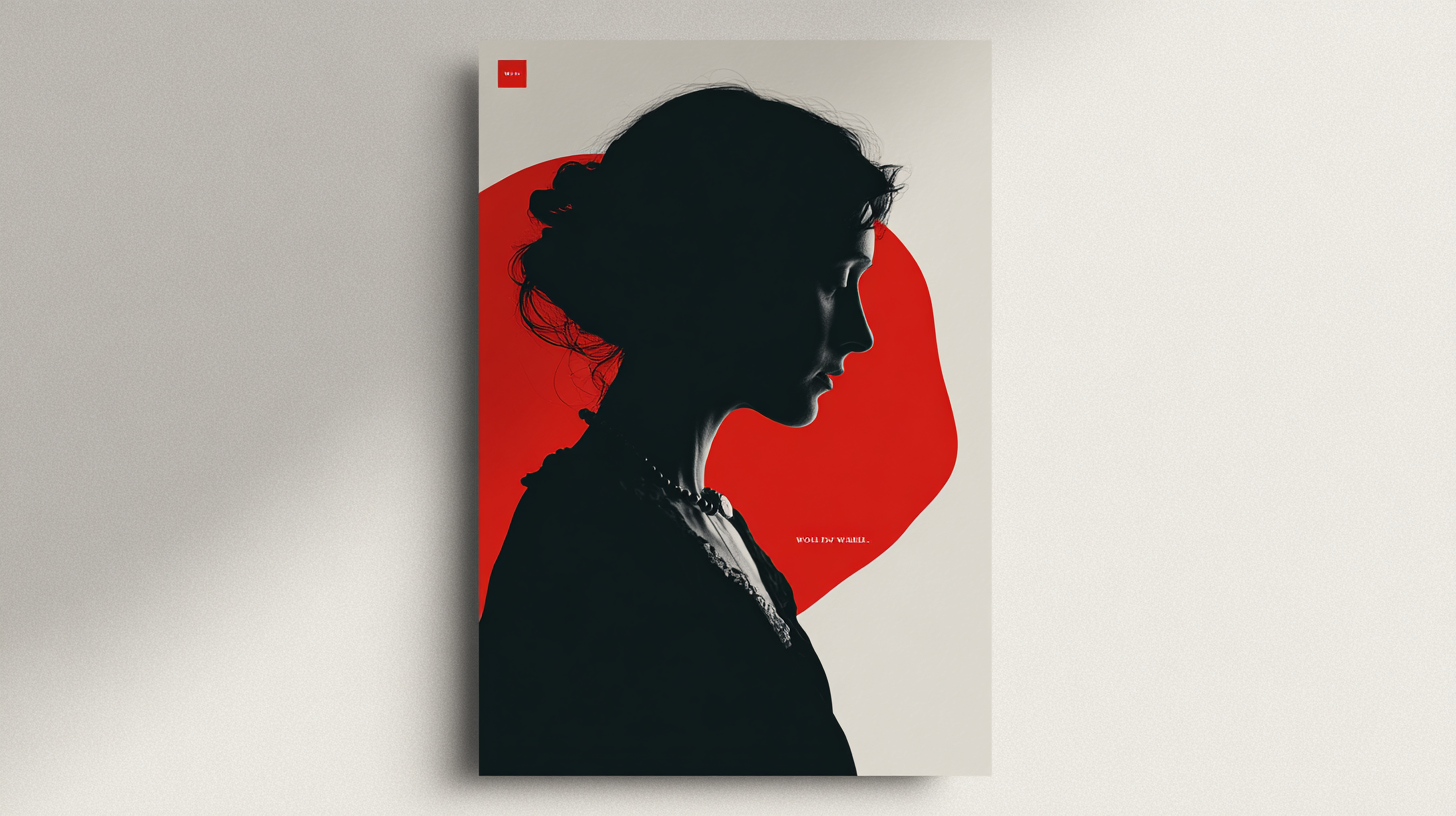 Minimalist feminist poster with silhouette and empowering Woolf quote.